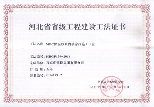 河北省省組工程建設工法證書